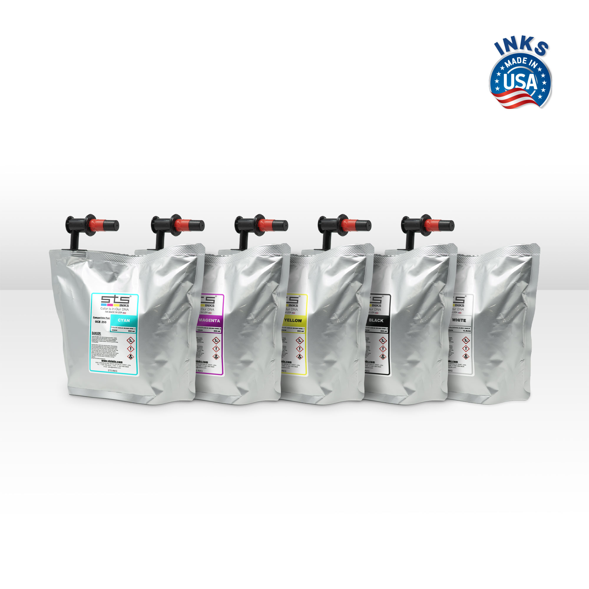 Océ Arizona IJC255 UV INKS CMYK 800 ML and White 1 Liter - STS Inks