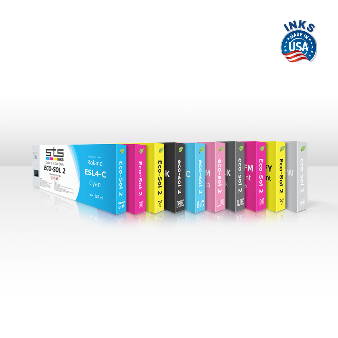 Specifically manufactured to match the exact performance & color properties of the Eco-Sol MAX 2 ® ink (OEM: ESL4). This STS Ultra Premium Eco-Solvent ink has a stunning color gamut, performance, accurate color reproduction and the ability to print on a wide range of media. Our colors are a virtual match of the original and since it’s so incredibly close to the original there is no need to change the color profile or flush the lines. It has virtually no scent and is Plug & Print just like the original Eco-Sol MAX 2 ®. Environmentally friendly, Water Resistanse, Outdoor durability without lamination: similar to OEM.