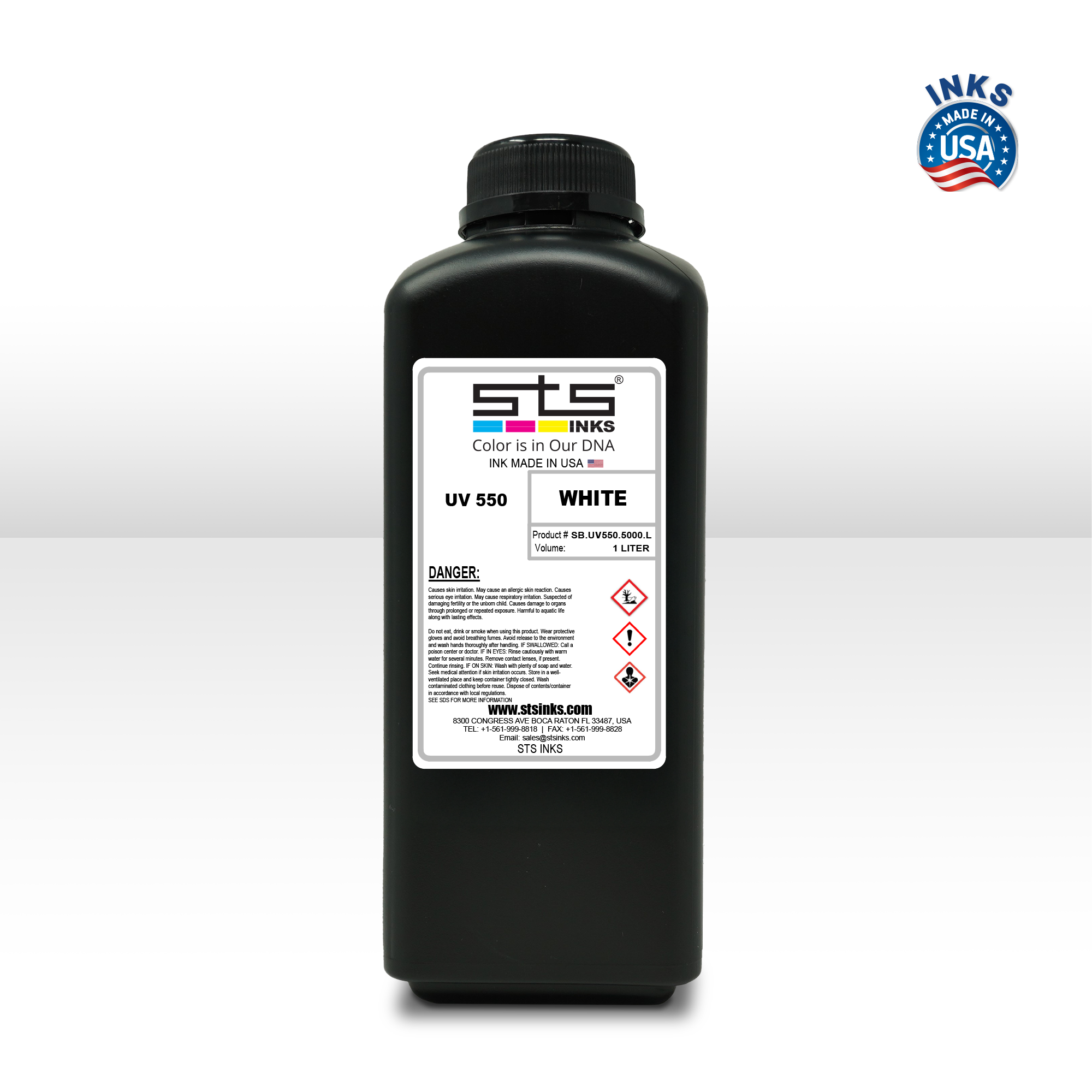 The STS Inks Replacement UV 550 Cure Ink 1L is designed for use in UV printing systems utilizing Ricoh Gen4, Gen5, and Gen6 print heads, with adaptable compatibility for other printhead technologies.